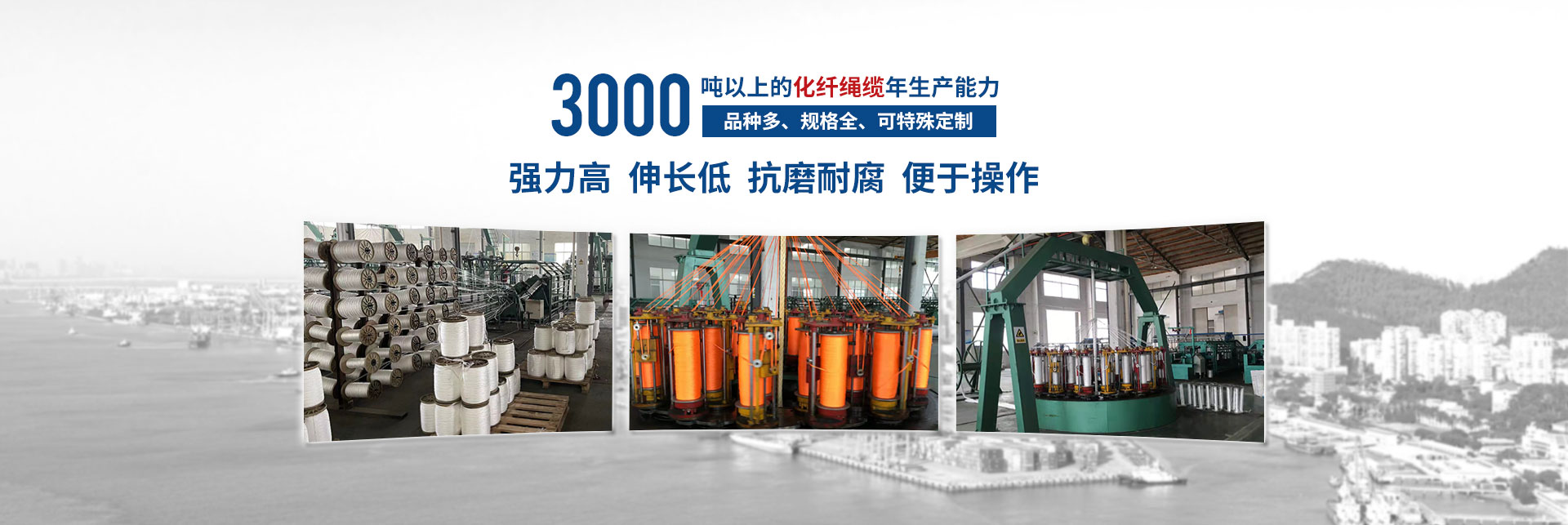 按國際標(biāo)準(zhǔn)生產(chǎn)的“繩龍”牌化纖繩纜,品種多、規(guī)格全,產(chǎn)品廣泛應(yīng)用于遠(yuǎn)洋運(yùn)輸、船舶制造、漁業(yè)捕撈、港口作業(yè),國防軍工、石油勘探等領(lǐng)域,取得市場廣泛認(rèn)可和市場占有率。